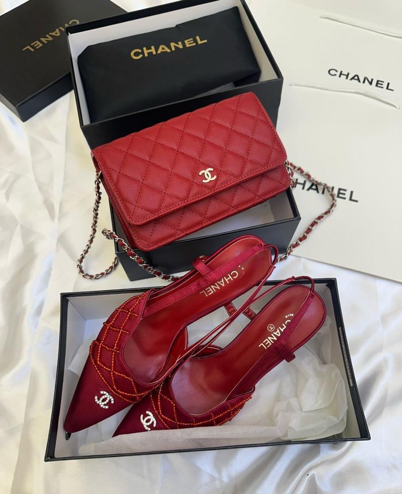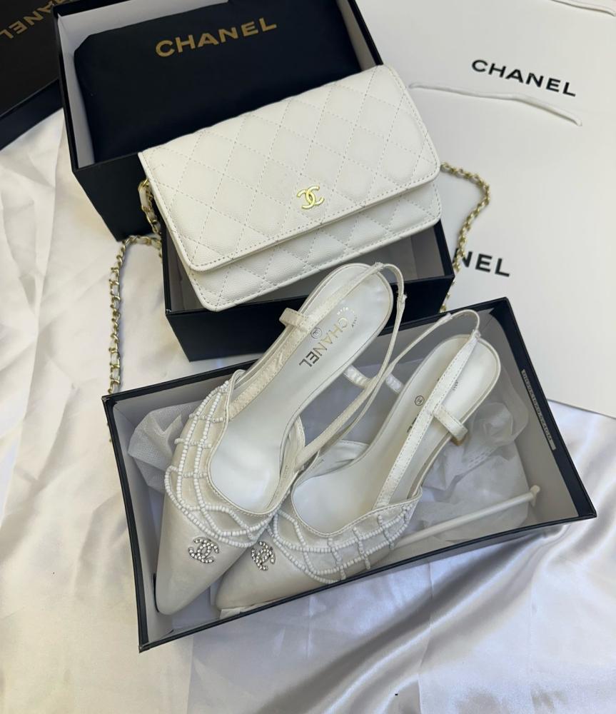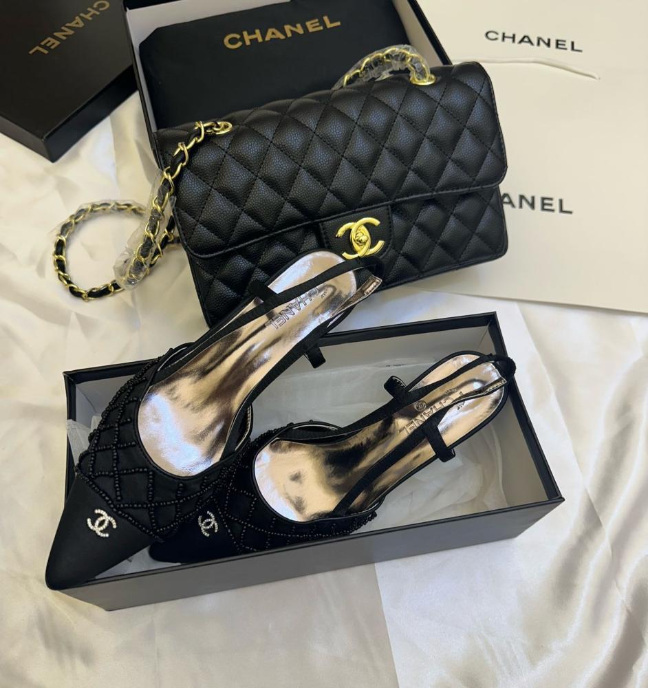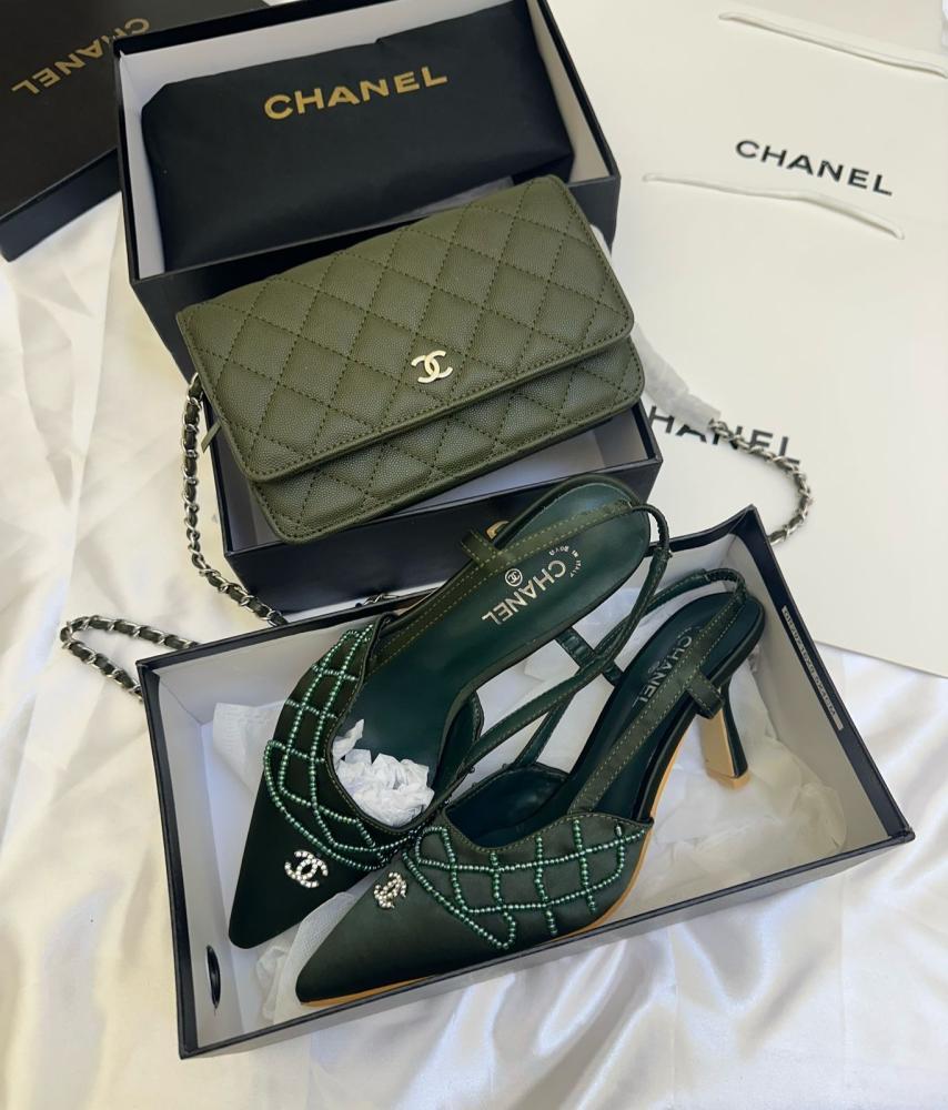 تألقي بإطلالة متناسقة وفاخرة مع طقم شانيل الذي يضم شنطة وهيلز بألوان متنوعة لتمنحك مظهرًا أنثويًا راقيًا يناسب كل الأوقات.